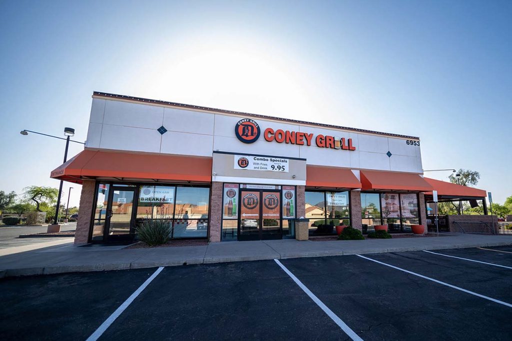The Scottsdale Detroit Coney Grill project consisted of a 3,100 SF full scale tenant improvement converting existing restaurant space into the popular Detroit Coney Grill on North Hayden Road near the beloved McCormick Ranch and shopping district. The blueprints for this design were created by the commercial architecture firm Ross Design Group and executed with an elevated attention to detail.